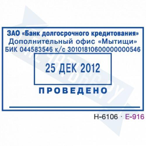Размер поля: 56 х 33 мм. Месяц: цифрами. Разделители: точки. Штемпельная подушка: синяя.