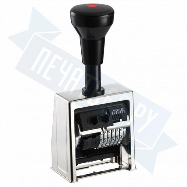 Нумератор автоматический в металлическом корпусе. Высота шрифта: 5,5 мм, Кол-во разрядов: 6, Размер оттиска: 23 мм, Материал корпуса: металл