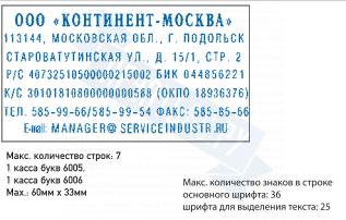 | Размер поля: 60 х 33 мм, строк 7, кол-во знаков 36/25 |