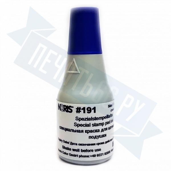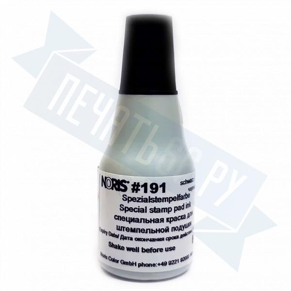 Современная краска №191 подходит практически для всех непористых поверхностей (глянцевая бумага, картон, железо, олово, свинец, медь, платина, пластмасса, дерево, фанера, ткань, целлофан, черепица, кирпич, бетон, керамика, керамическая плитка, фарфор, эмаль, стиропор, стекло, CD диски и многое другое). Она быстро сохнет на таких материалах, но остается влажной и свежей в подушке неделями. Может использоваться для самоокрашивающихся печатей и штампов с подушками на фетровой основе.
